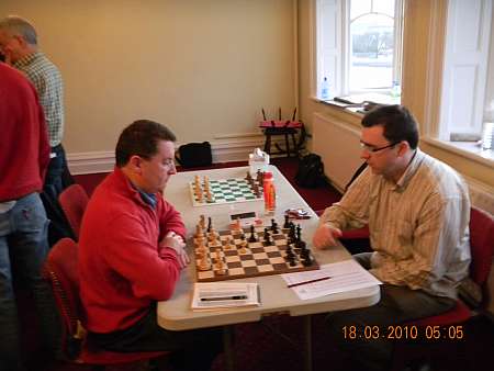 Round 7 top board game - Martin O'Grady on left v Rory Quinn
