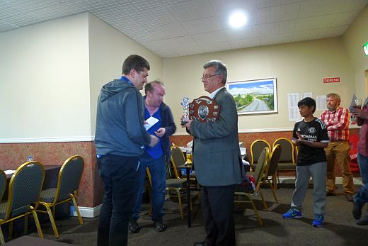 Open section joint second Phillip Short on 5/6 points, receiving his trophy and prize money from Alan Salsac