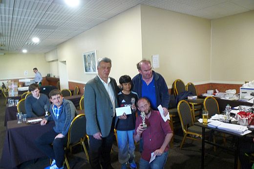 Open section winner was IM Lucian-Costin Miron on 5.5/6 points, receiving his trophy and share of prize money from MCU Chairman Alan Salsac