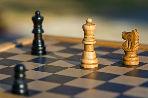 Hunt tournament Final James v IM Gubanov on the Hunt Museum giant chessboard. Black has just played 23..Ke6 heading for the isolated c3 pawn and it is White to move.