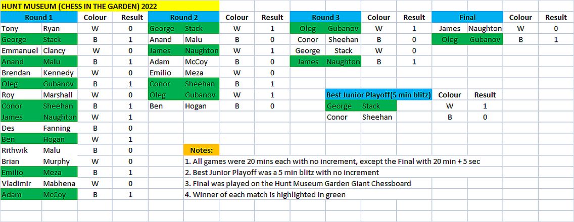 The Hunt tournament Best Junior 5 min blitz playoff between George Stack and Conor Sheehan was won by George.