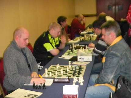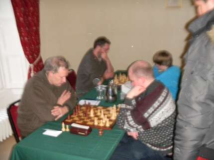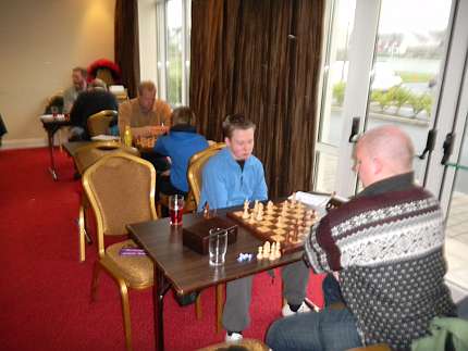 MCU Div 1 round 5 Limerick v Cork match, Board 1 Joona Kiiski (Limk) v Hugh Doyle (Cork, playing White) and Bd2 Chris Young (Limk, back to camera) v Henk de Jonge (Cork) on 11.12.10 at Charleville Park hotel, Charleville.